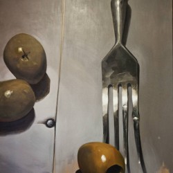 – Nes tai žvėriškai smagu. Didelis formatas veikia kitaip. Jei natiurmortai būtų mažiukai, tai jie ir išlaikytų tas proporcijas. Bet didelio formato paveiksle daiktai išdidėja ir pakeičia savo prasmę. Keičiasi daikto semantika – morka tampa rąstu vandenyje. O tu pats, galima sakyti, sumažėji. Juk yra toks dalykas kaip žiūrovo ir darbo formato santykis. Šituo atveju man patinka, kaip tai veikia.